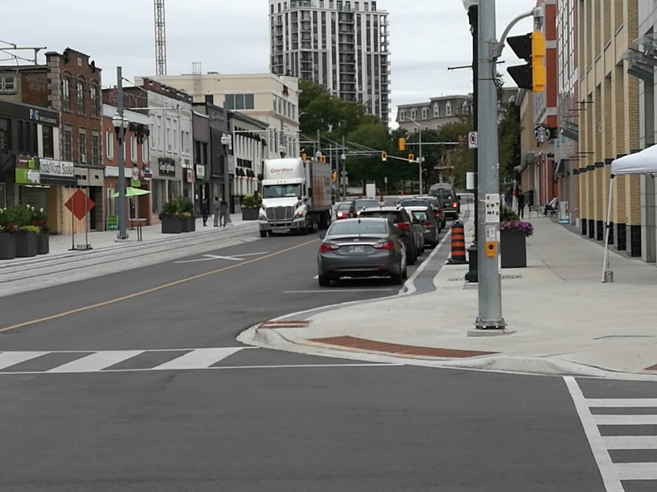 Well this is a first for the LRT, a truck, parked for delivery, NOT blocking the tracks and instead on the road.  Bravo!