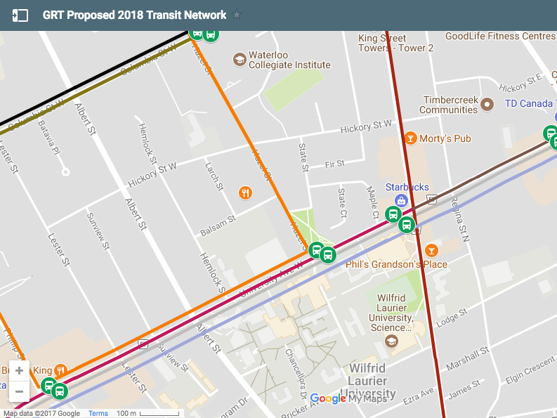 (09-08-2017, 11:50 AM)MidTowner Wrote: Would you suggest moving the Laurier stop from the Laurier gates to King? Or just doubling up the stops there? My preference would be to re-do the stops along University altogether. Instead of: Weber, Hazel, Philip, Seagram Have: Weber, King, Albert, ION/Laurel Trail, Seagram I also understand that there is no way they would abandon all those expensive stops they built.