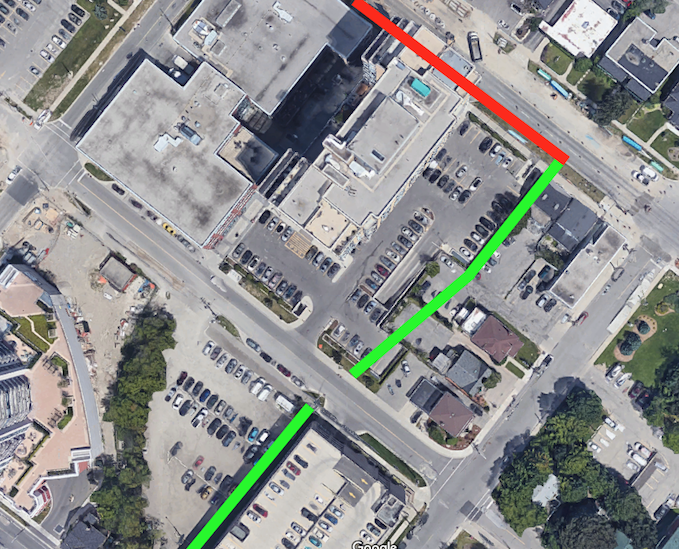 In an alternate universe, where actual lanes for people who cycle were put in along King right through Uptown instead of that lane line that is there currently poseing as a cycling lane, I thought there might be a remote opportunity to return some utility to the end of IHT by creating a connection through that row of properties when they were redeveloped: