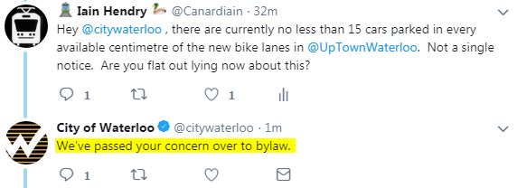 (04-10-2018, 09:35 AM)robdrimmie Wrote: Regarding the Uptown Waterloo bike lanes, the city has made their position pretty clear: They are not bike lanes until the construction is complete. I don't see how protesting before they are "blessed" as being real lanes will make any kind of positive change. The city made a bad decision, but they've communicated that decision to us quite consistently.