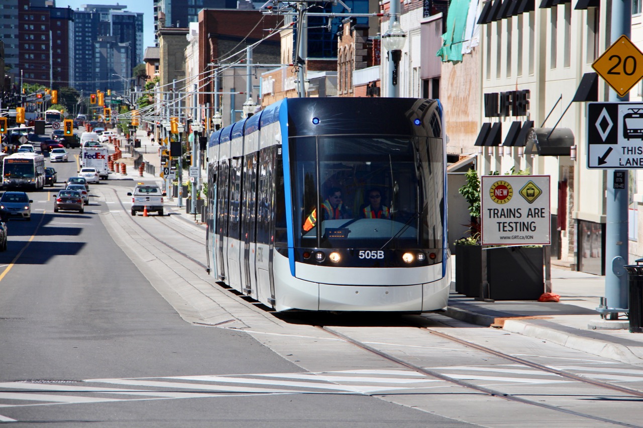 (06-12-2018, 03:09 PM)KevinT Wrote: Caught a bit of today's testing as 505 arrived and departed from Waterloo Public Square.  The signals at the Erb/Caroline intersection worked well but the ones in the parking lot were still a bit glitchy...