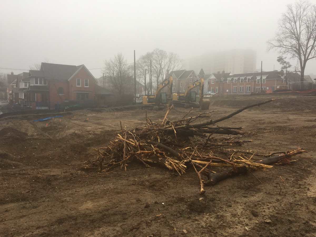 The demolition is done now, the lot is mostly graded and they have a building permit for the foundation, although not yet for the rest of the construction.