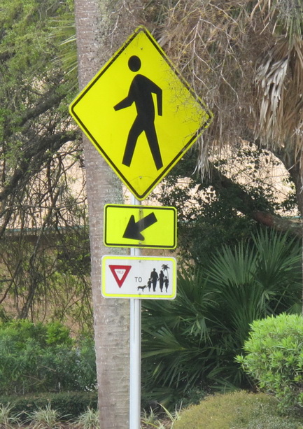 Pedestrians should have easy ways to move through plazas, parks, restricted-access delivery streets, and other places cars can’t go. Clear signage explaining how to navigate around a complex is important, especially for tourist-heavy areas.