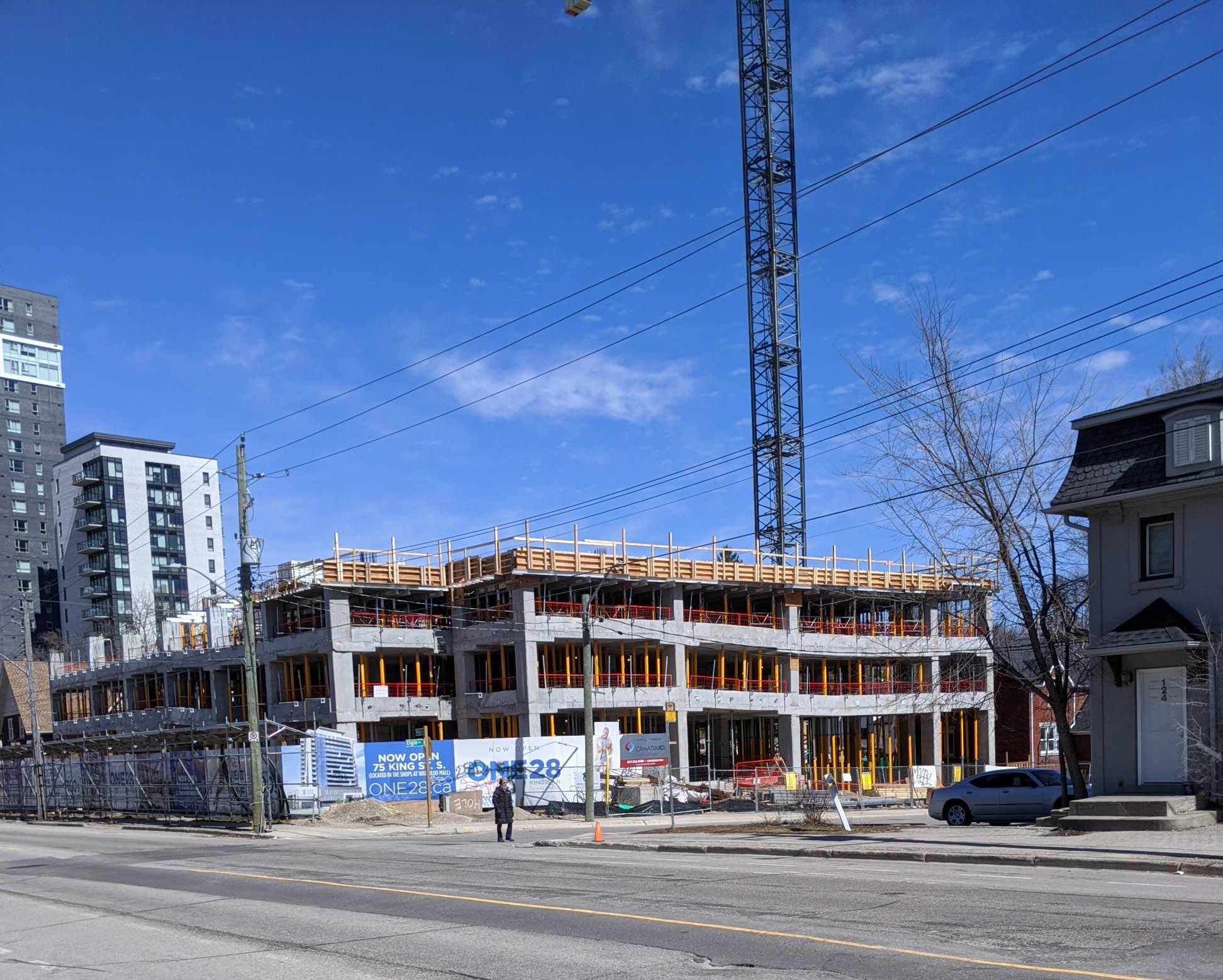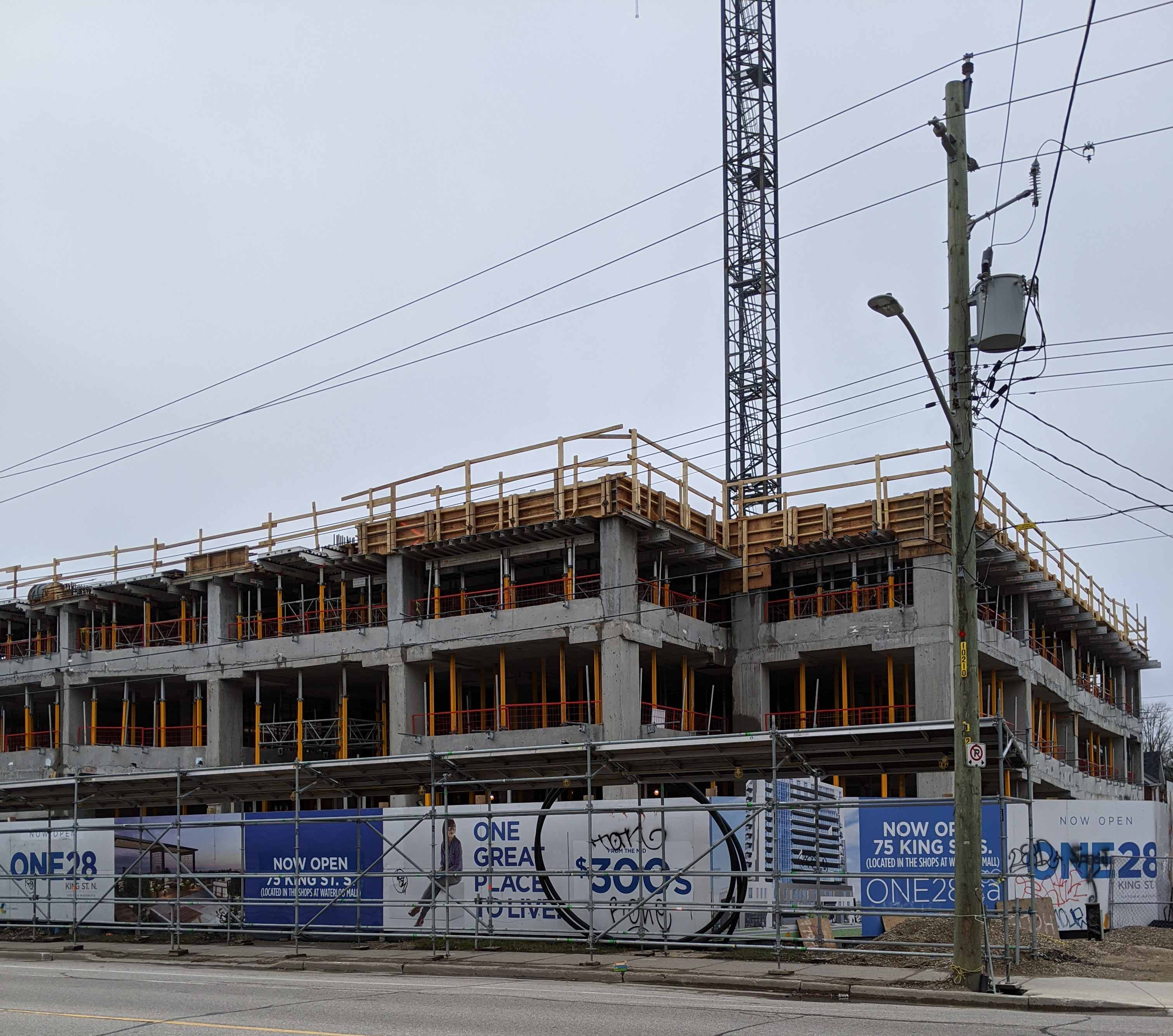 It looks like the floor for the second storey has been fully poured, and a few support pillars are up for the next level.