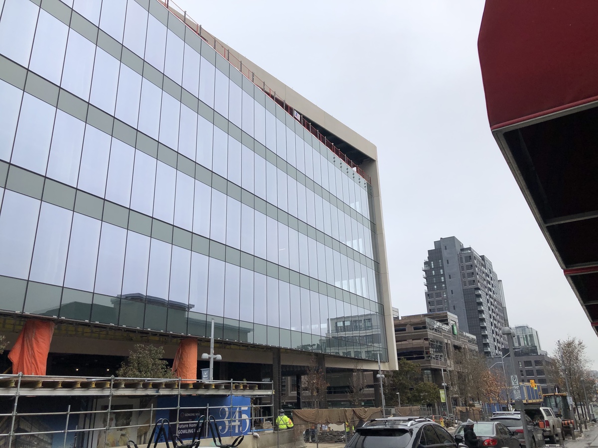 I don't understand the objection to the building either. I mean, it's small and modest in design, but that's why it works. The glass is a beautiful facade to have on King Street (especially that section) and at night time it'll let out a nice amount of light. The concrete on the sides of the building are nice and warm looking despite being quite bold, and they match aspects of the neighbouring office tower nicely. I really think the design was intentionally supposed to match the neighbouring 305 King. 305 is of the modernist era, but it looks exceptionally contemporary for something built in the 1960s and so having 345 King be visually similar is a good design plan. It suits the area it's in and shall look pretty good from any angle. I'll be curious to see the inside of it, because atmosphere is particularly important to get right in an office building.