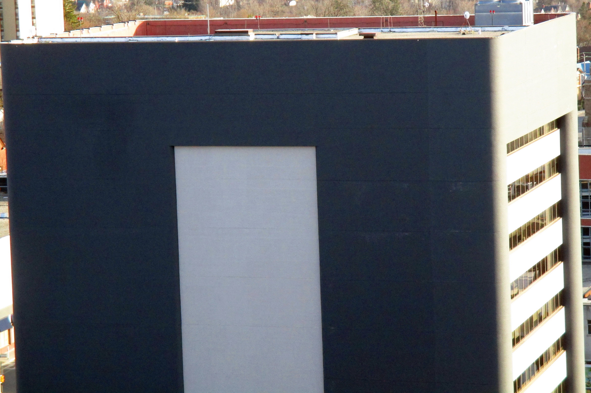 The discoloration that was visible last fall is almost gone. I can only see a very small area that is still discolored near the top, west side of the building. I wonder if it was just something cosmetic.