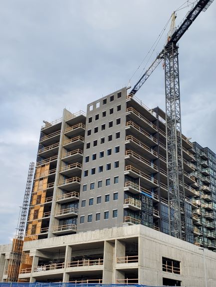 The 21 storey building is up to 13 storeys counting the parking garage.