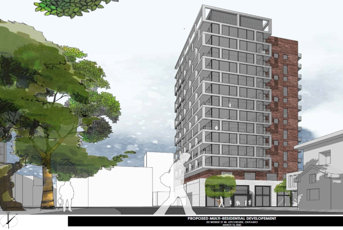 The proposal at 22 Weber St. W., directly opposite Ontario Street, would have 126 units, including 19 barrier-free units with direct frontage and access off Weber Street.