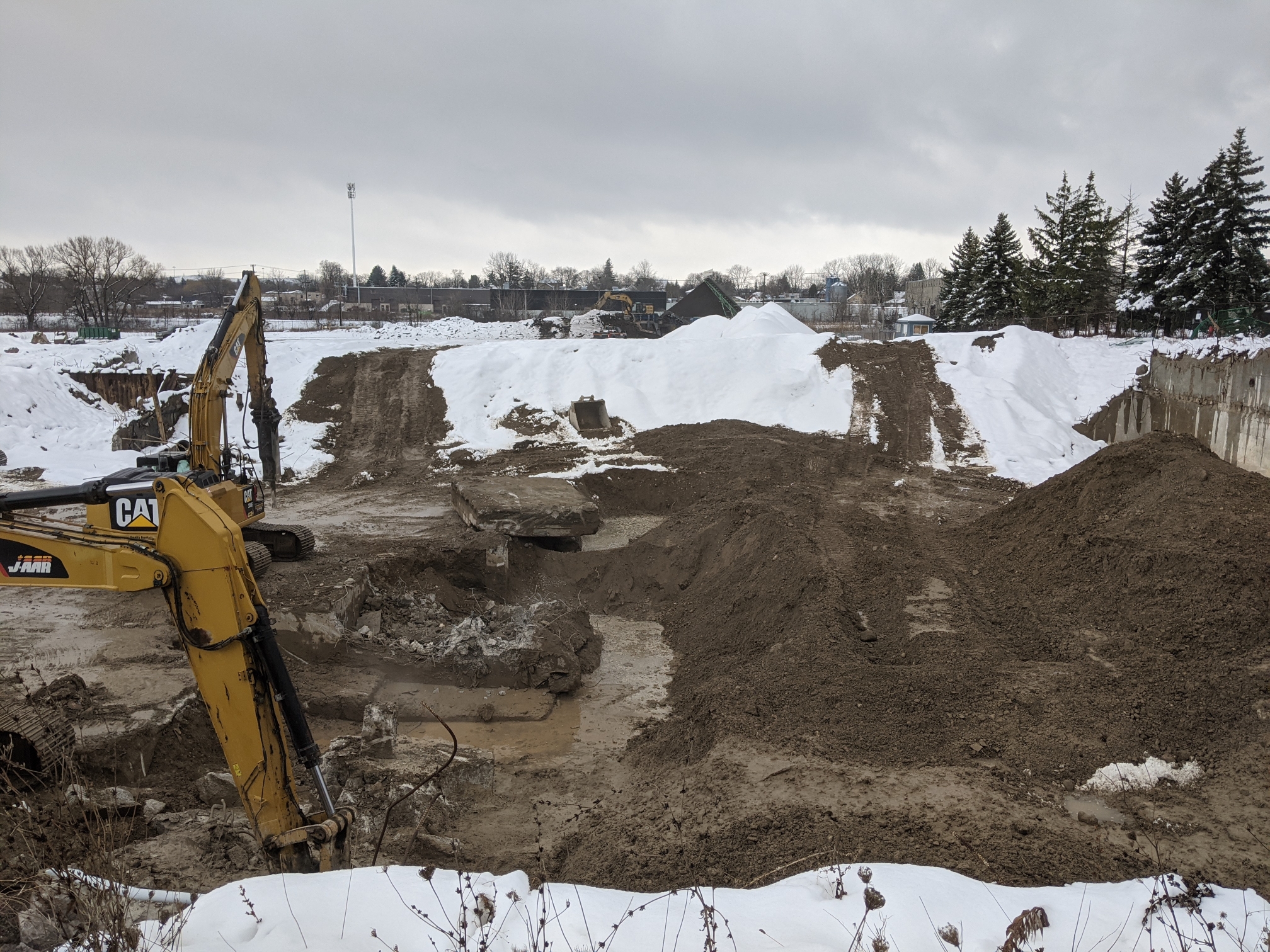 Demolition stopped in July 2019 because of disagreement with the demolition contractor.